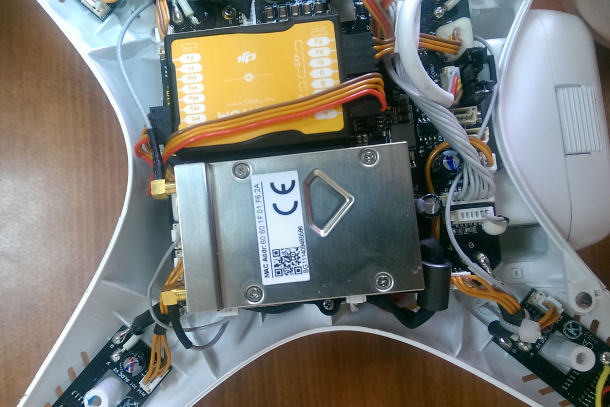 На фото: замена передатчика видео сигнала квадрокоптера DJI Phantom 2 Vision+.